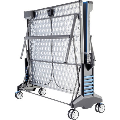 כיסויי פינות להגנת הפלטות. מתקן לאחסון מחבטים וקופסאות אחסון כדורים בשני צידי השולחן. מערכת נעילה פשוטה לשימוש ביד אחת לסגירת השולחן.