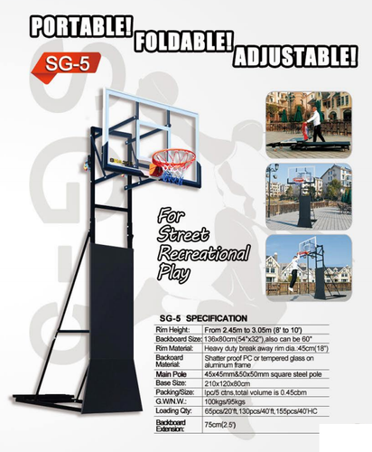 מתקן סל נייד SG-5 איכותי ביותר מתכוונן מ-245 עד 305 ס"מ 33268 מבית CITYSPORT