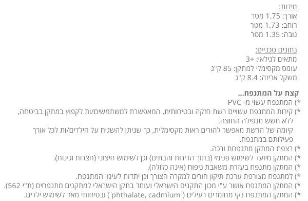 מתקן מתנפח 93553 לשימוש חיצוני ופנימי FISHER PRICE