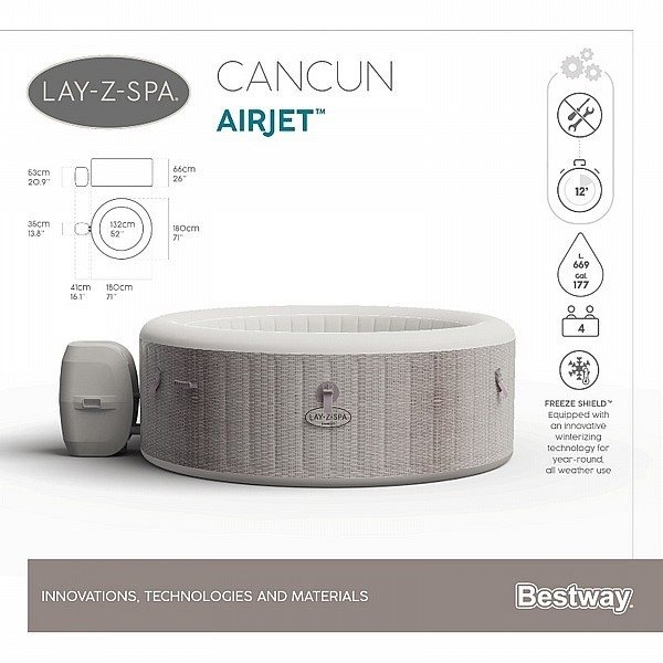 ג'קוזי מתנפח מתאים ל-2-4 אנשים 60003 דגם CANCUN מבית BESTWAY