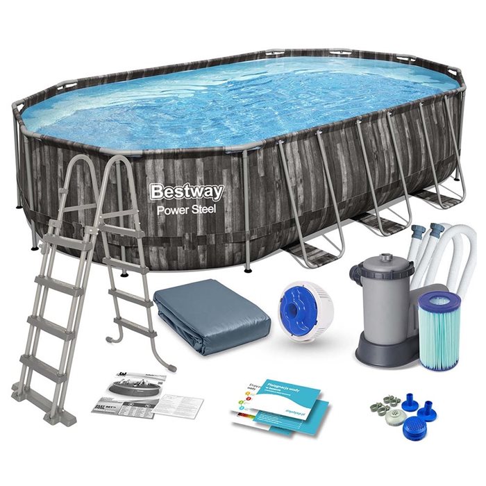 בריכת בסטוואי אולטרה אובלית דמוי עץ 5611R בגודל 610/366/122 ס"מ מבית BESTWAY