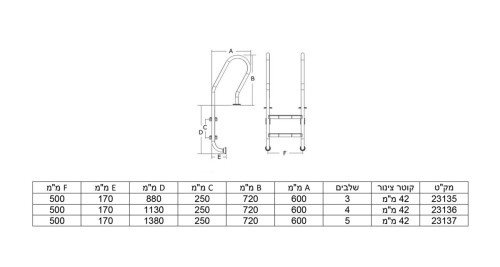 סולם נירוסטה 228905 לבריכה (316) 5 שלבים דגם N מוסטנג