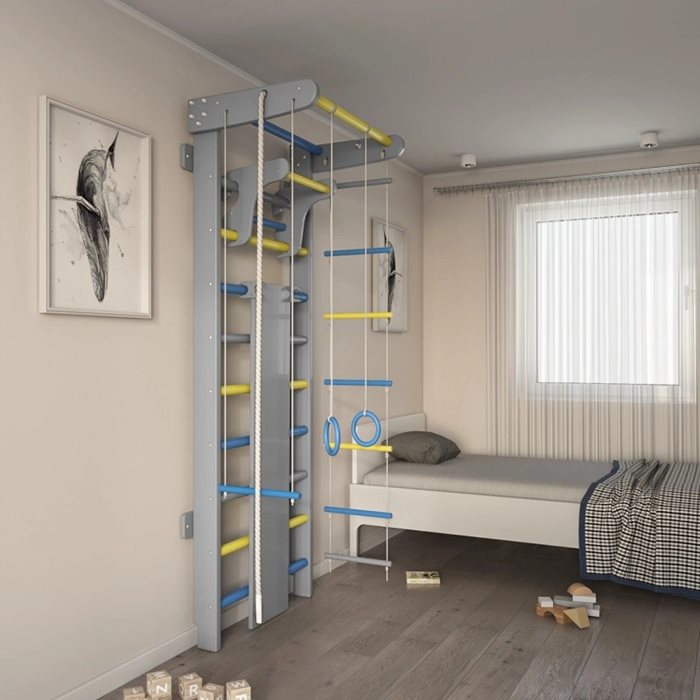 מתקן ספורט לילדים ביתי כולל סט אביזרים מלא 100917 בצבע אפור עם שילוב צהוב/כחול