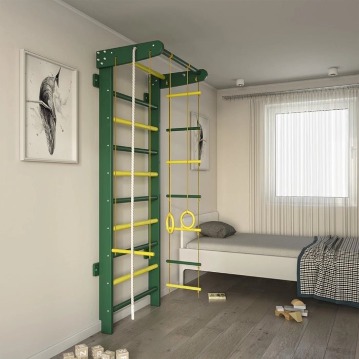 מתקן ספורט לילדים ביתי כולל סט חבלים 100920 בצבע ירוק/צהוב