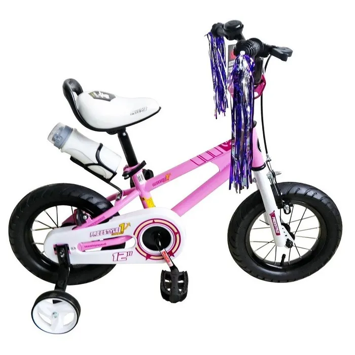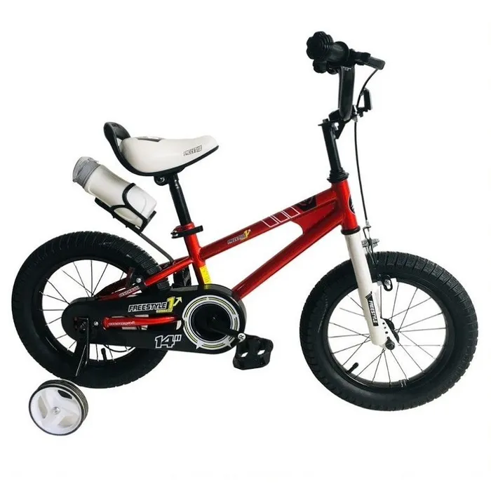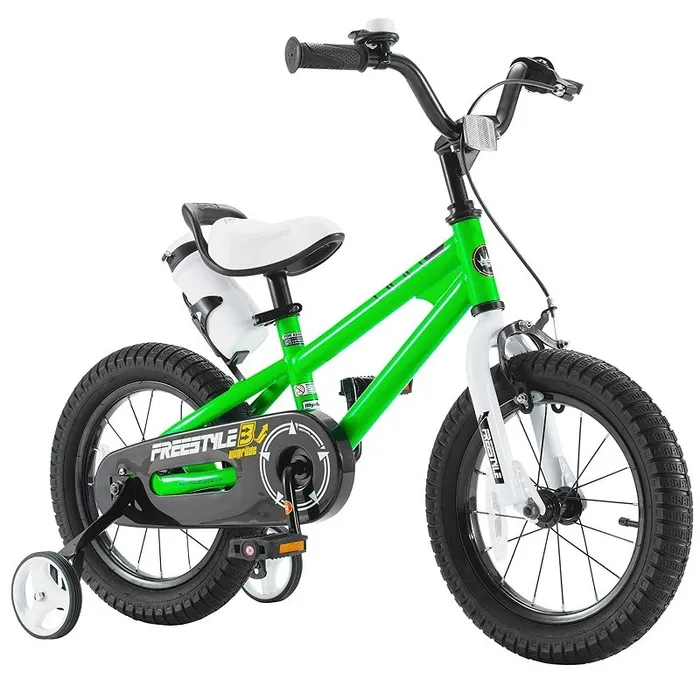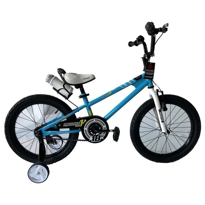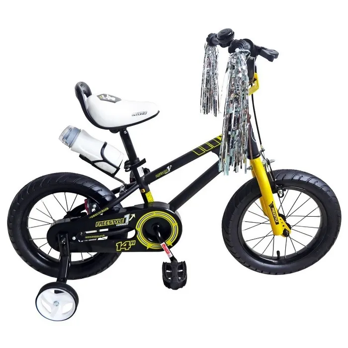 אופני ילדים פריסטייל בעלי צמיגים עבים ובקבוק שתייה עם שני גלגלי עזר