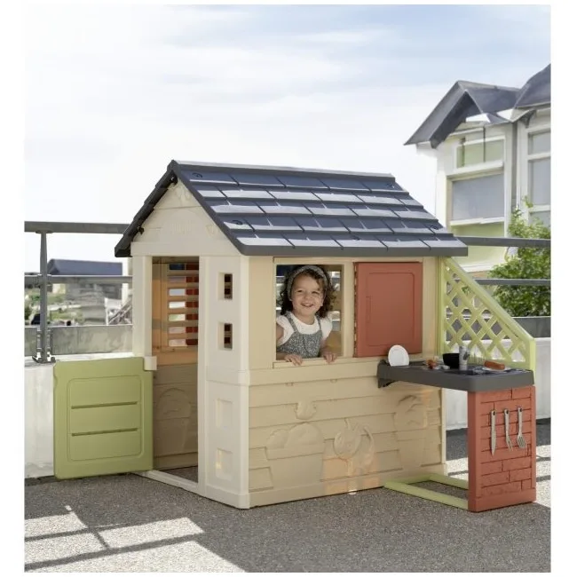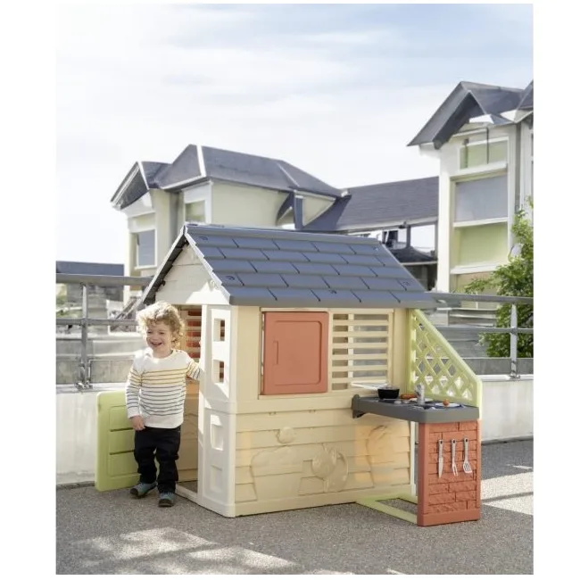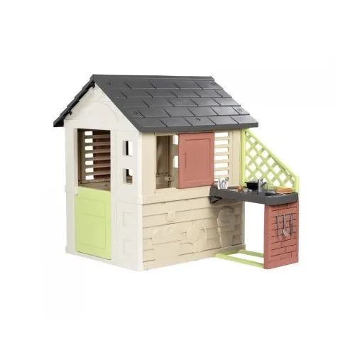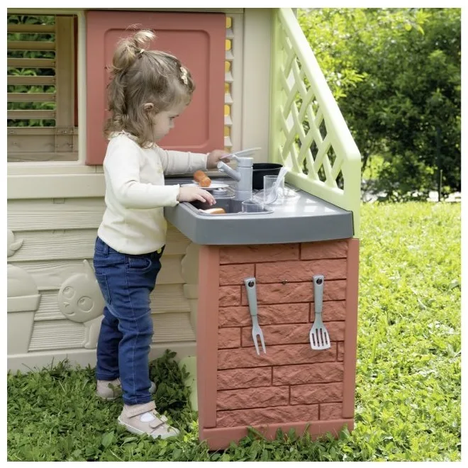 בית משחקים מעוצב שיאפשר לילדכם דימוי של משחק בטבע עם בישול במטבח עם הגריל ומגוון האביזרים הגדול שמגיע עם הבית.
