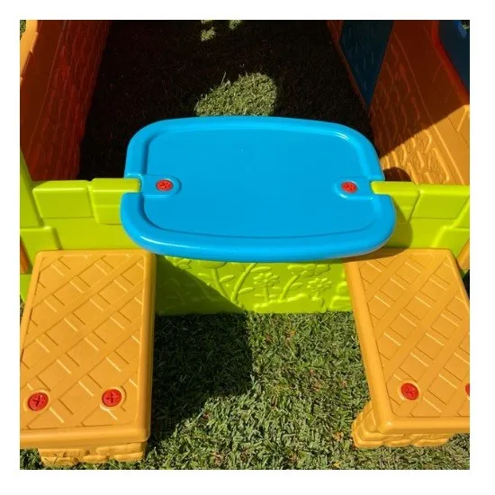 בית משחקים אטרקטיבי ורב-תכליתי, מושלם לכל חצר אחורית. הצבעים העזים והעיצוב