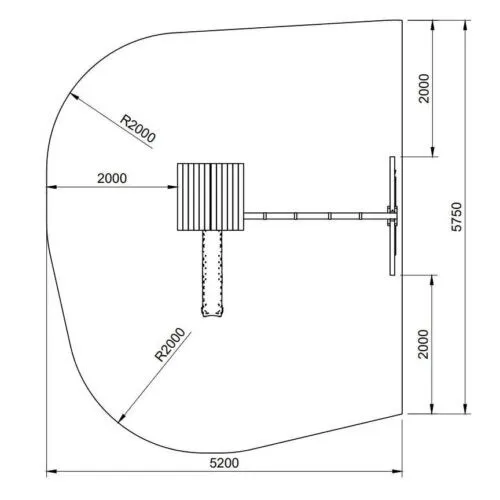 מתקן טיפוס וגלישה, כולל מגלשה ושתי נדנדות.