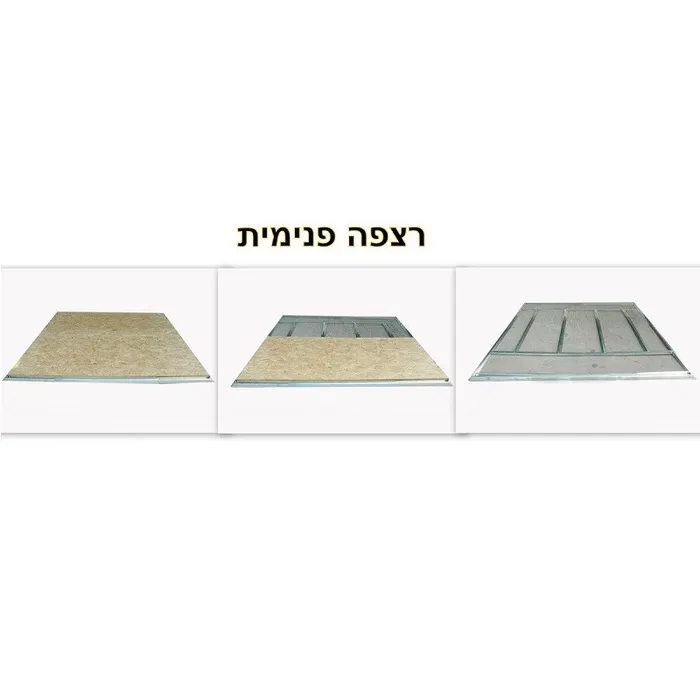 1. רצפה פנימית - משמשת להגבהת המוצרים במחסן (לא מהווה תחליף לקרקע יציקה) ע"מ שלא יירטבו במידה וינכס מים. עשוי בסיס מתכת ושבבי עץ (OSB) מחיר הרצפה למחסן: 730 ש"ח