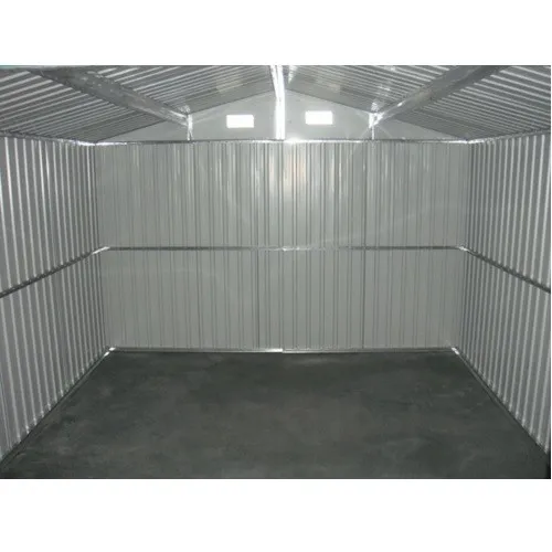 מחסן פח עשוי מתכת מגולוונת הצבועה בצבעי תנור, מתאים לכל מזג אוויר (במיוחד לאקלים הישראלי טיפוסי).