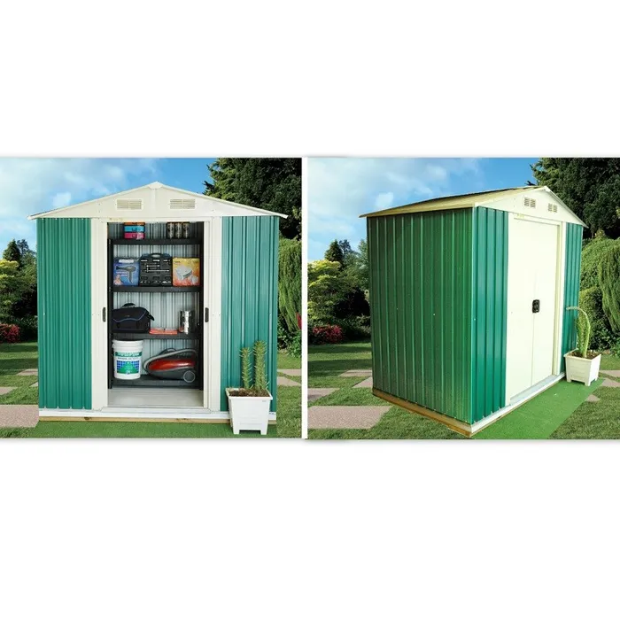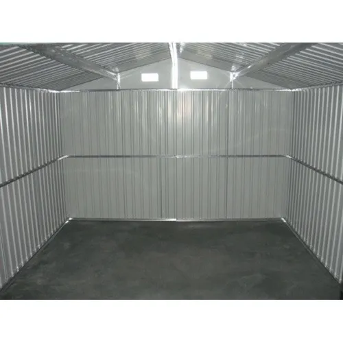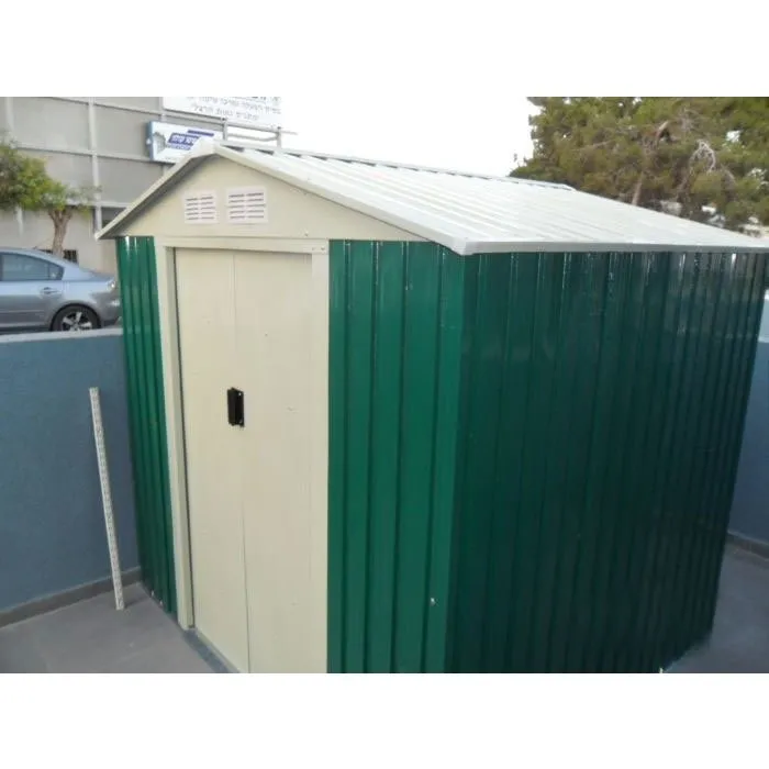 מחסן פח עשוי מתכת מגולוונת הצבועה בצבעי תנור, מתאים לכל מזג אוויר ( במיוחד לאקלים הישראלי טיפוסי).