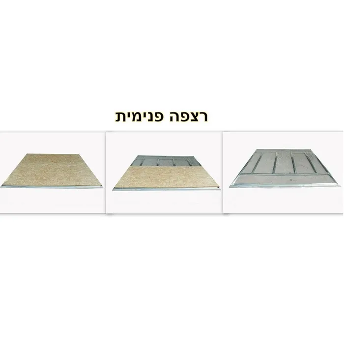 1. רצפה פנימית - משמשת להגבהת המוצרים במחסן (לא מהווה תחליף לקרקע יציקה) ע"מ שלא יירטבו במידה וינכס מים. עשוי בסיס מתכת ושבבי עץ (OSB) מחיר הרצפה למחסן: 730 ש"ח
