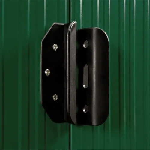 - המחסן מגיע עם 2 ידיות המאפשרות הכנסת מנעול בחורים הנמצעים על הלשונית של הדלת (המחסן מגיע ללא מנעול).