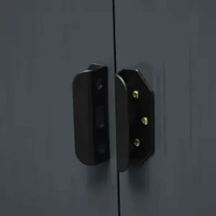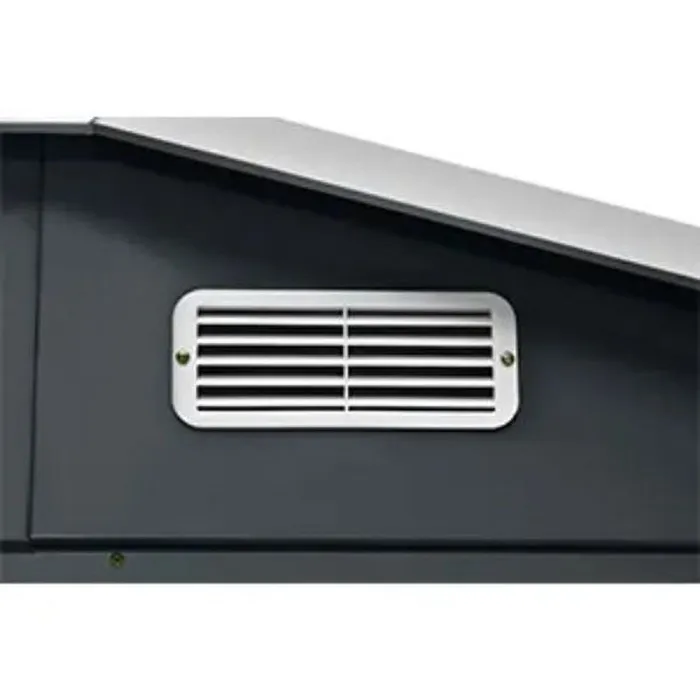 מחסן מתכת בצבע אפור עם פתחי אוורור