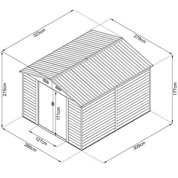 המחסן עשוי ממתכת מגולוונת ונצבע בתנור, לשמירה על הצבע לאורך זמן.