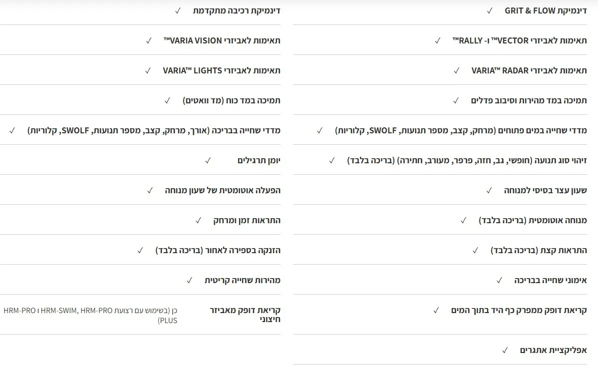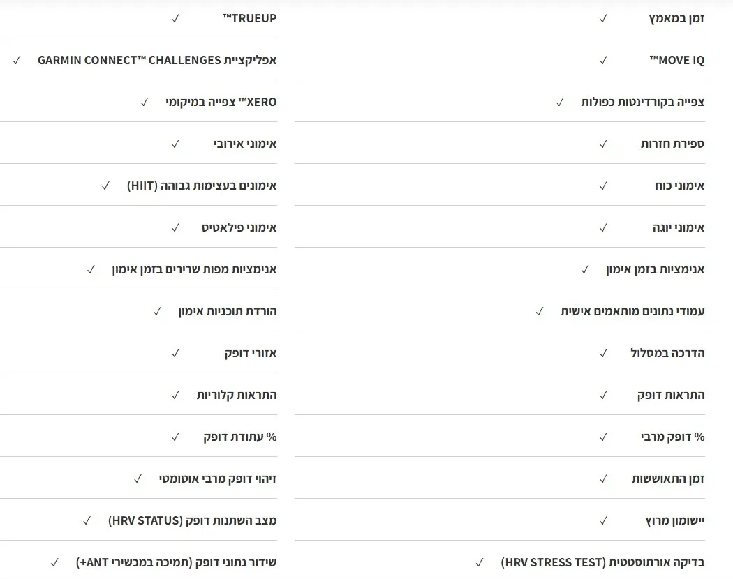 לספורטאים רציניים והרפתקנים שרוצים לפרוץ את הגבולות שלהם, שעון ה-GPS מולטיספורט המתקדם שמיועד לביצועים מיטביים — עם תכונות אימוני כוח מתקדמות, יכולות צלילה, רמקול ומיקרופון מובנים לפקודות קוליות, פנס LED מובנה עם עוצמות תאורה משתנות ואור בטיחות.