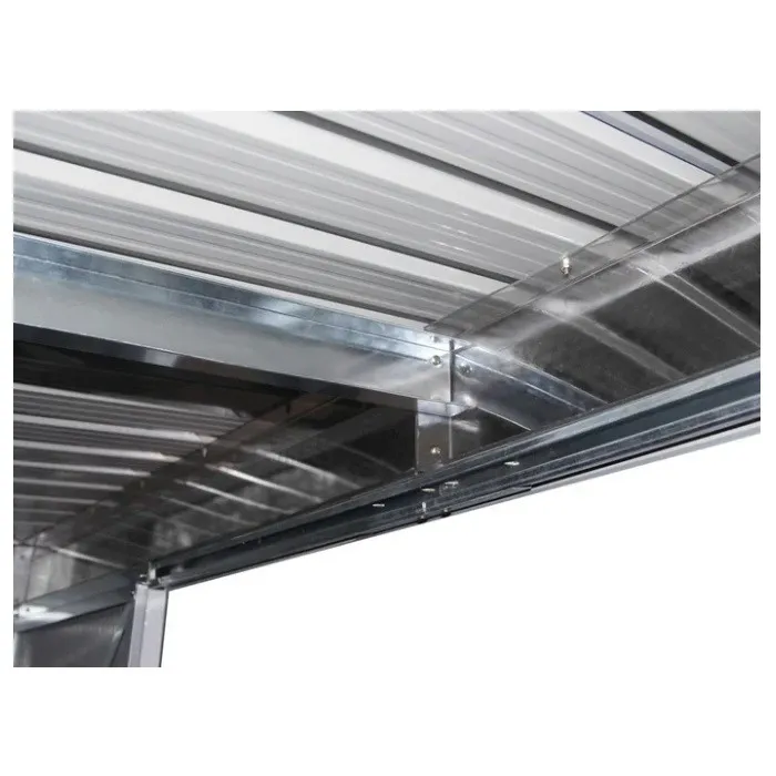 - למחסני המתכת מבית Garden Top זוג דלתות הזזה על מסילה פנימית ו-4 פתחי אוורור ובעלי חלון סקייליט ייחודי.