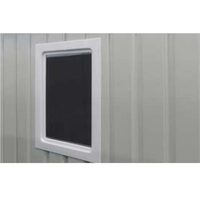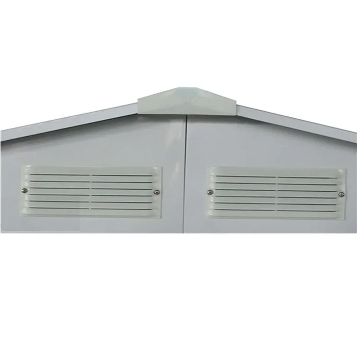 - למחסני המתכת מבית Garden Top זוג דלתות הזזה על מסילה פנימית ו-4 פתחי אוורור ובעלי חלון ייחודי.