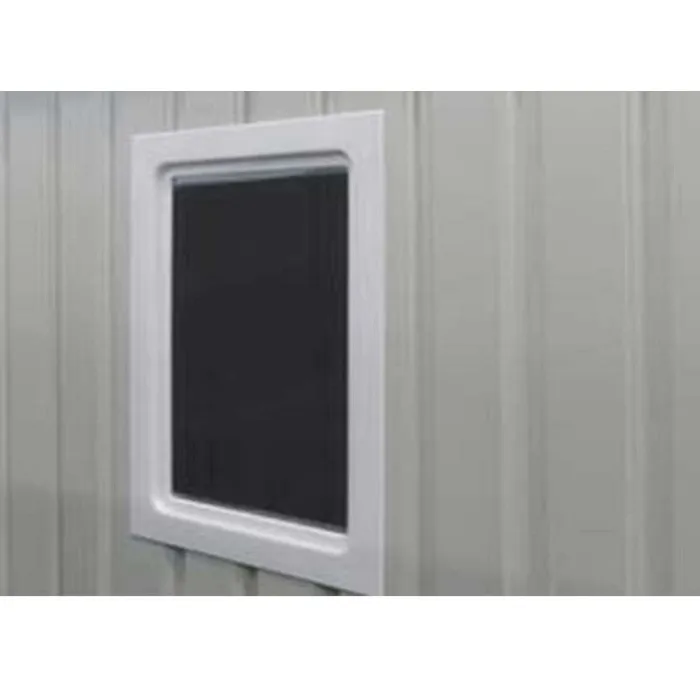 - למחסני המתכת מבית Garden Top זוג דלתות הזזה על מסילה פנימית ו-4 פתחי אוורור ובעלי חלון ייחודי.