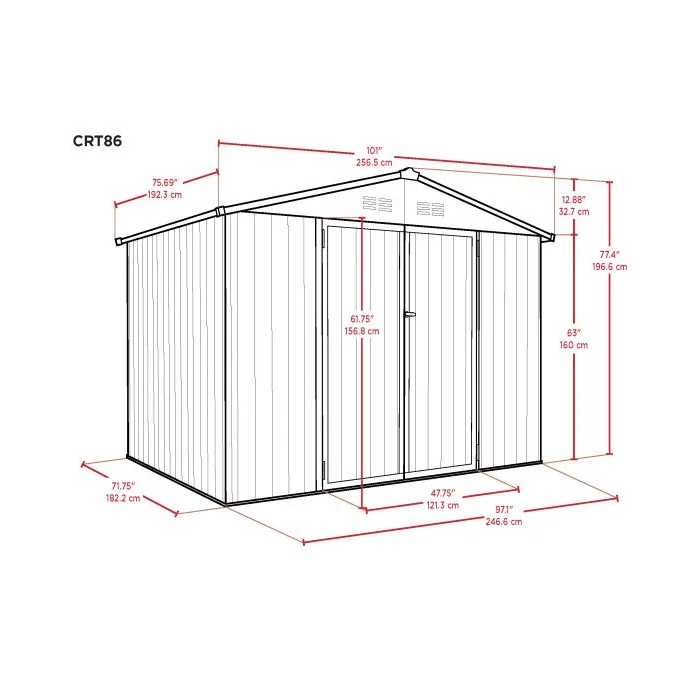 מחסן מתכת קומפקטי 243030 דגם CR86 בגודל 2.56/1.93 מטר מבית Garden Top