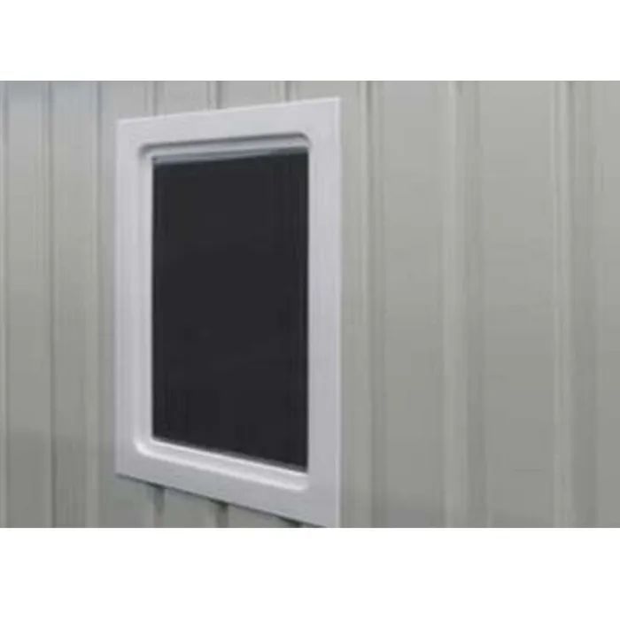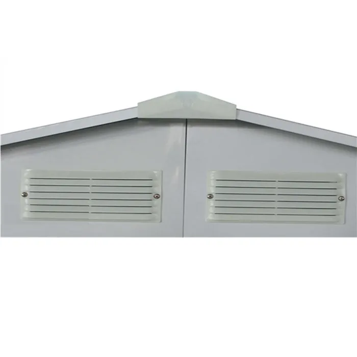 - למחסני המתכת מבית Garden Top זוג דלתות הזזה על מסילה פנימית ו-4 פתחי אוורור ובעלי חלון ייחודי.