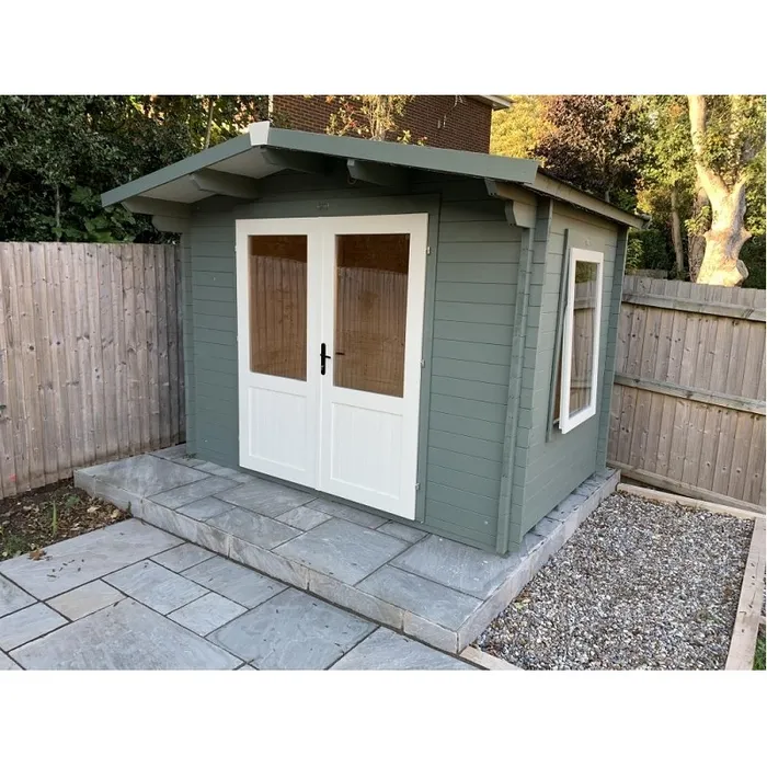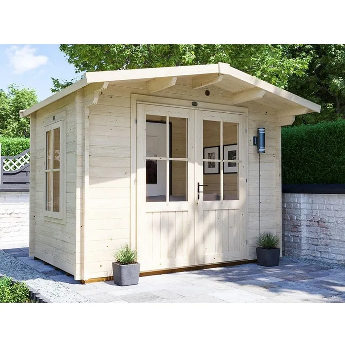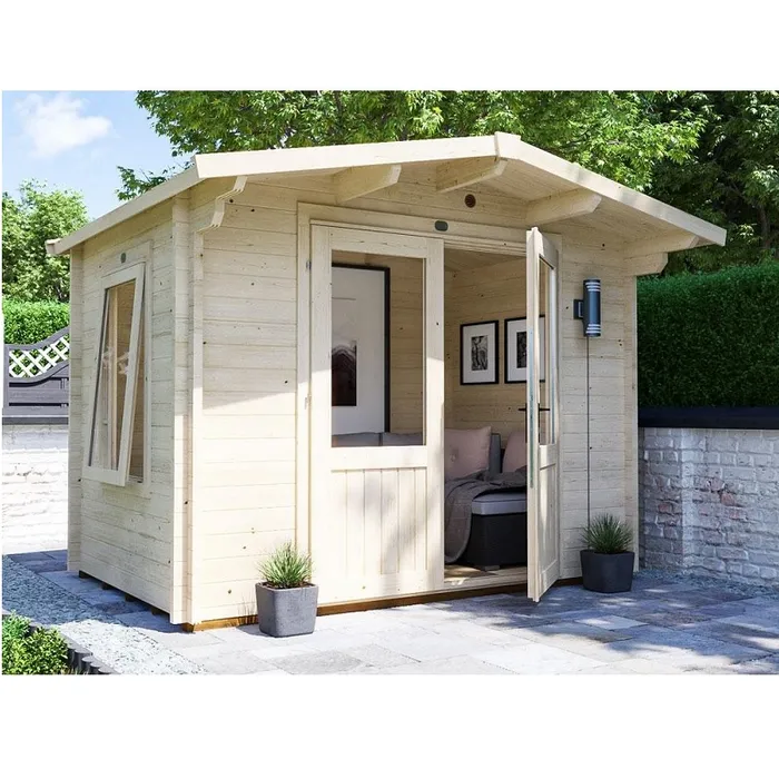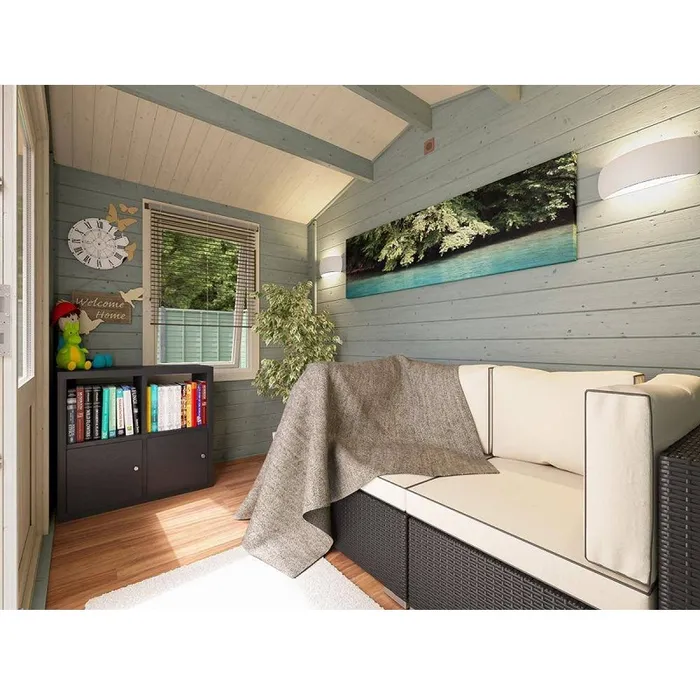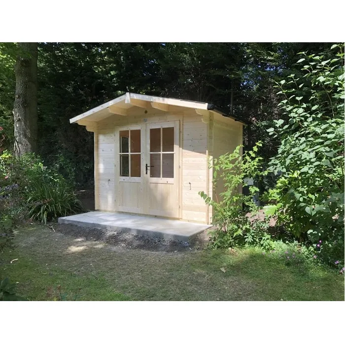 מחסן עץ מעוצב לגינה, עובי קורות עץ 45 מ"מ ( עבה במיוחד!), המחסן כולל רצפה ותוספת גגון.