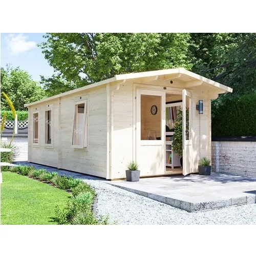 מחסן עץ מעוצב לגינה, עובי קורות עץ 45 מ"מ ( עבה במיוחד!), המחסן כולל רצפה וגגון.