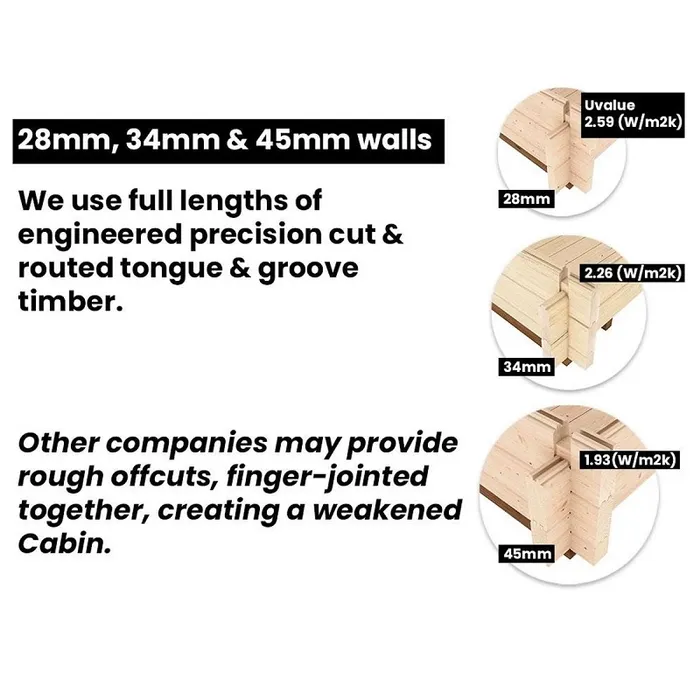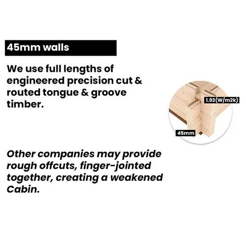 הגג עשוי עץ אשוח בגידול איטי בעובי של 19 מ"מ.