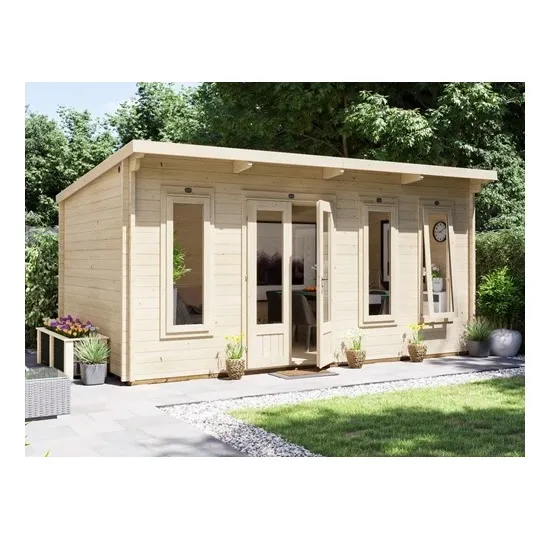 מחסן עץ מעוצב לגינה, עובי קורות עץ 45 מ"מ (עבה במיוחד!), המחסן כולל רצפה ותוספת גגון.