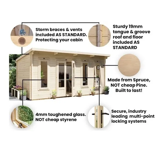 מחסן עץ אטום למים, כולל חלונות נפתחים, צילינדר, רצפה.