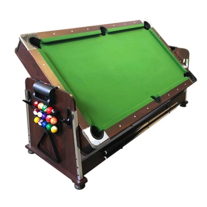 שולחן סנוקר 4 ב1 בצבע חום עם בד ירוק