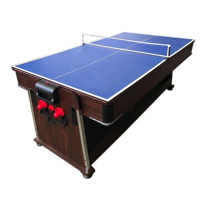 שולחן סנוקר 4 ב -1 איכותי 250606 בגודל 7 פיט, בעל 4 מצבים – בצבע חום ובד ירוק