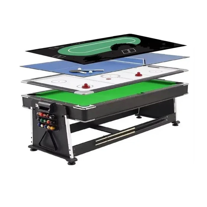 שולחן סנוקר משולב 5 ב -1 איכותי 250608 בגודל 7 פיט, בעל 5 מצבים בצבע שחור בד ירוק