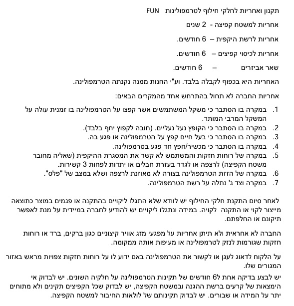 אחריות: חצי שנה ע"פי כתב אחריות