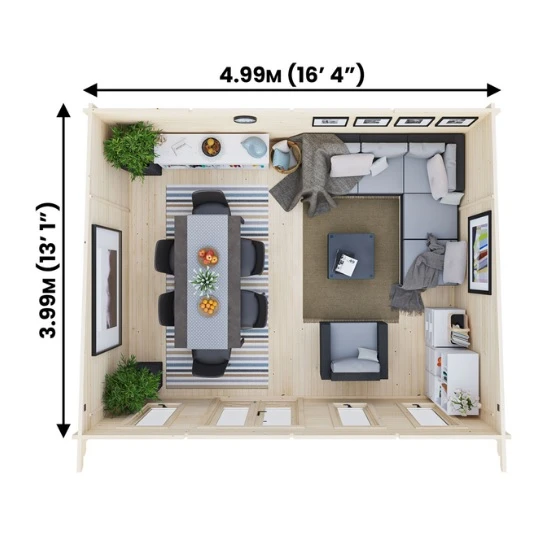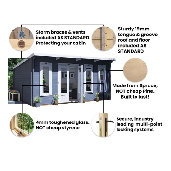 מחסן עץ פרמיום 250924 בגודל 5/4 מטר בעובי 45, דגם TERMINATOR מבית DUNSTER HOUSE