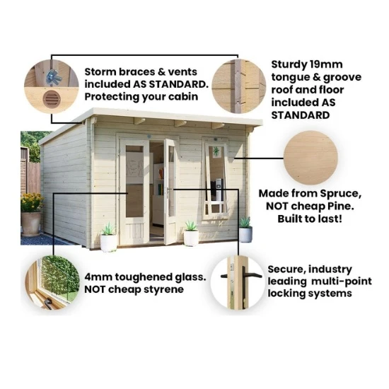 מחסן עץ אטום למים, כולל חלונות נפתחים , צילינדר, רצפה