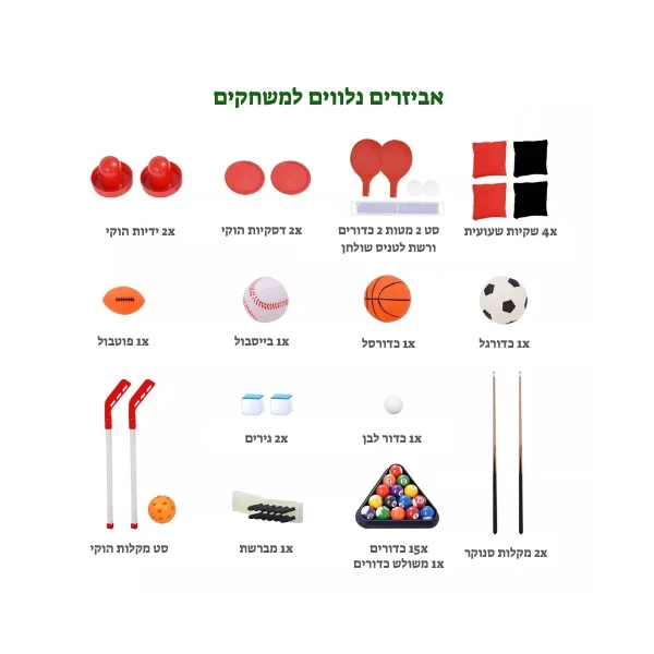 הכל בשולחן אחד – הוקי, טניס שולחן, סנוקר, פוטבול, משחק שקית שעועית,
