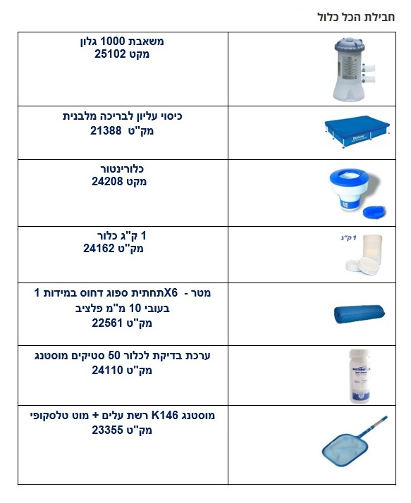 הבריכה כוללת דיסק עם הוראות התקנה ושימוש.