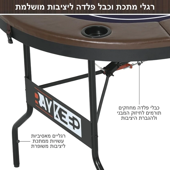 שולחן פוקר אליפטי מתקפל 180 ס"מ בצבע חום