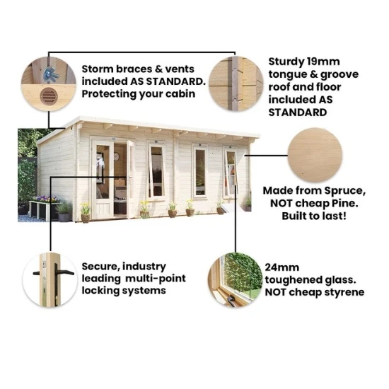מחסן עץ אטום למים, כולל חלון נפתח, צילנדר, רצפה