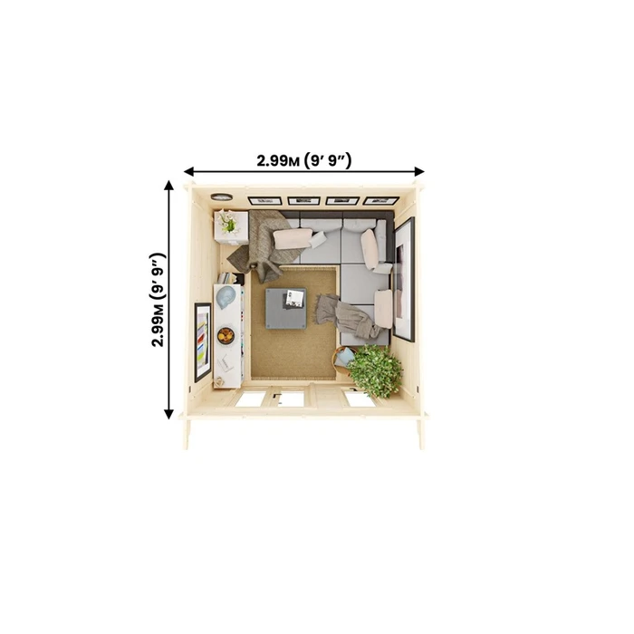 מחסן עץ אטום למים, כולל חלון נפתח, צילנדר, רצפה