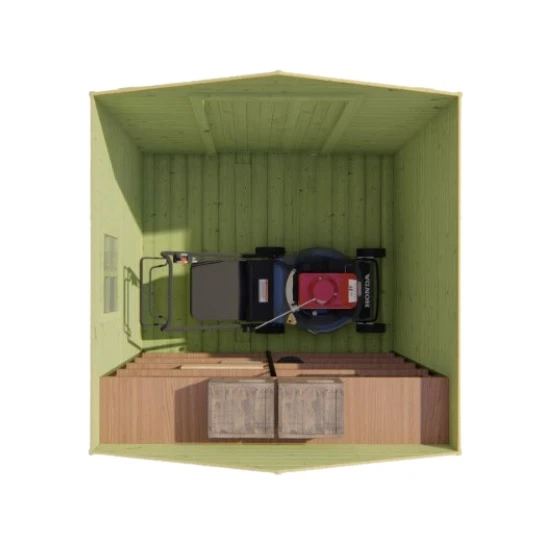 מחסן עץ אורן ירוק כולל חלון נפתח, ורצפה