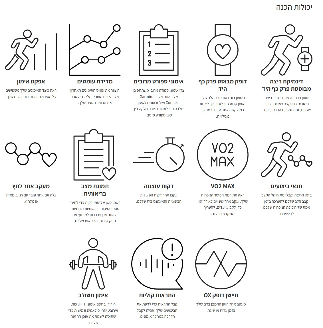30+ סוגי פעילויות שונות – מעל 30 סוגי פעילויות ספורט שונות כולל פרופיל טריאתלון מובנה.