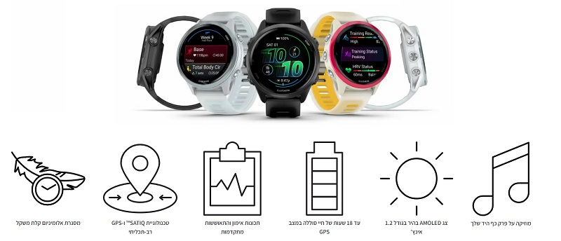 שעון ריצה Garmin Forerunner 570 מתקדם עם מסך מגע AMOLED – כולל רמקול ומיקרופון