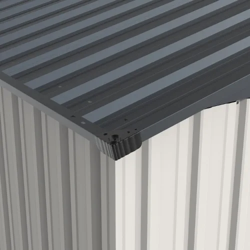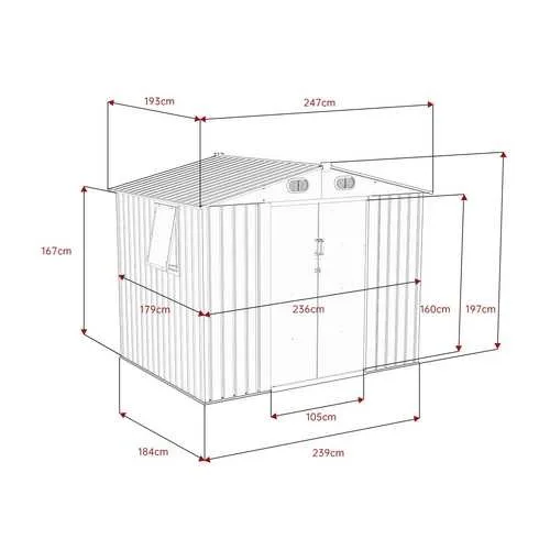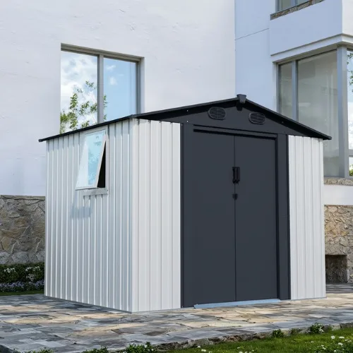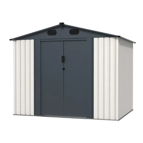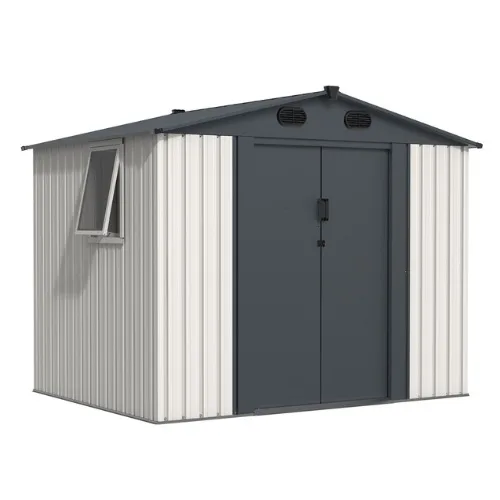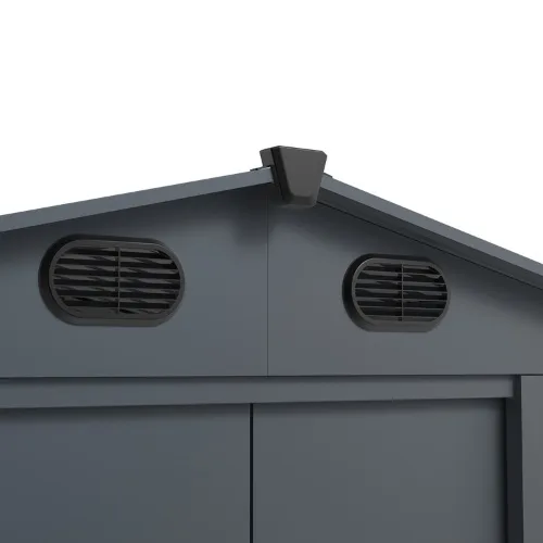 - למחסני המתכת מבית Garden Top זוג דלתות הזזה על מסילה פנימית ו-4 פתחי אוורור ובעלי חלון ייחודי.