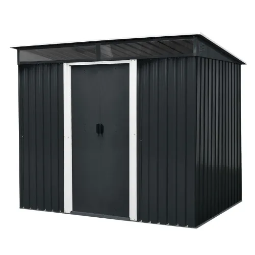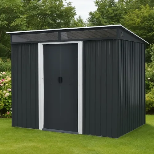 - למחסני המתכת מבית Garden Top זוג דלתות הזזה על מסילה פנימית.