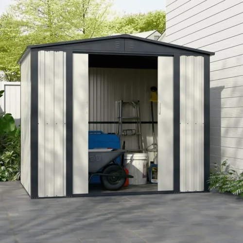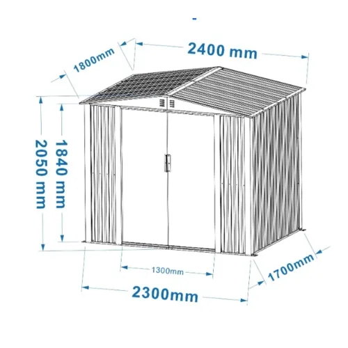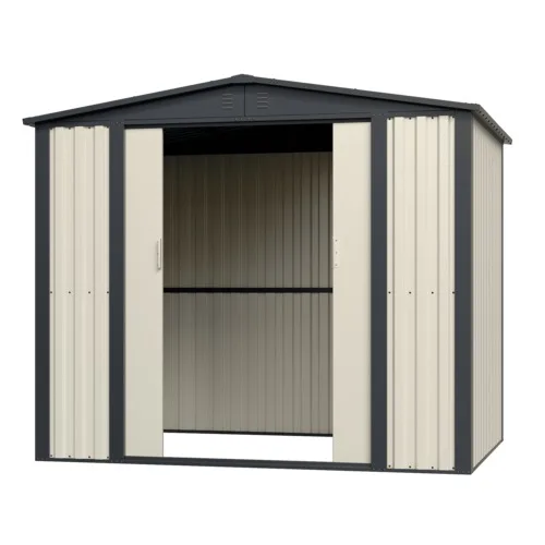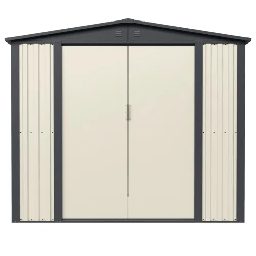 - למחסני המתכת מבית Garden Top זוג דלתות הזזה על מסילה פנימית ו-4 פתחי אוורור ובעלי חלון ייחודי.