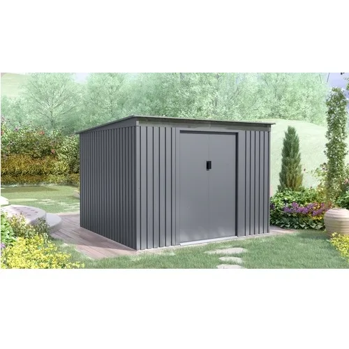 - למחסני המתכת מבית Garden Top זוג דלתות הזזה על מסילה פנימית.