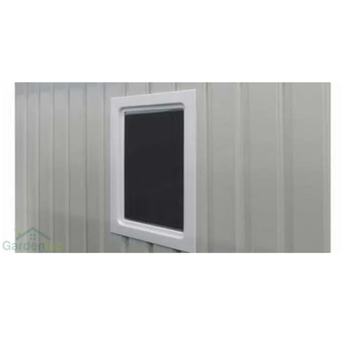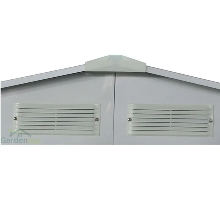 - למחסני המתכת מבית Garden Top זוג דלתות הזזה על מסילה פנימית ו-4 פתחי אוורור ובעלי חלון ייחודי.