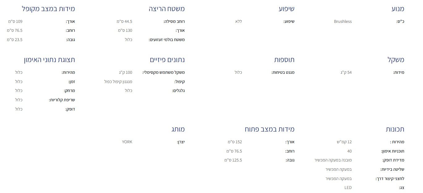 YORK JET PRO - מסלול ריצה קומפקטי בעל מנגנון קיפול חדשני